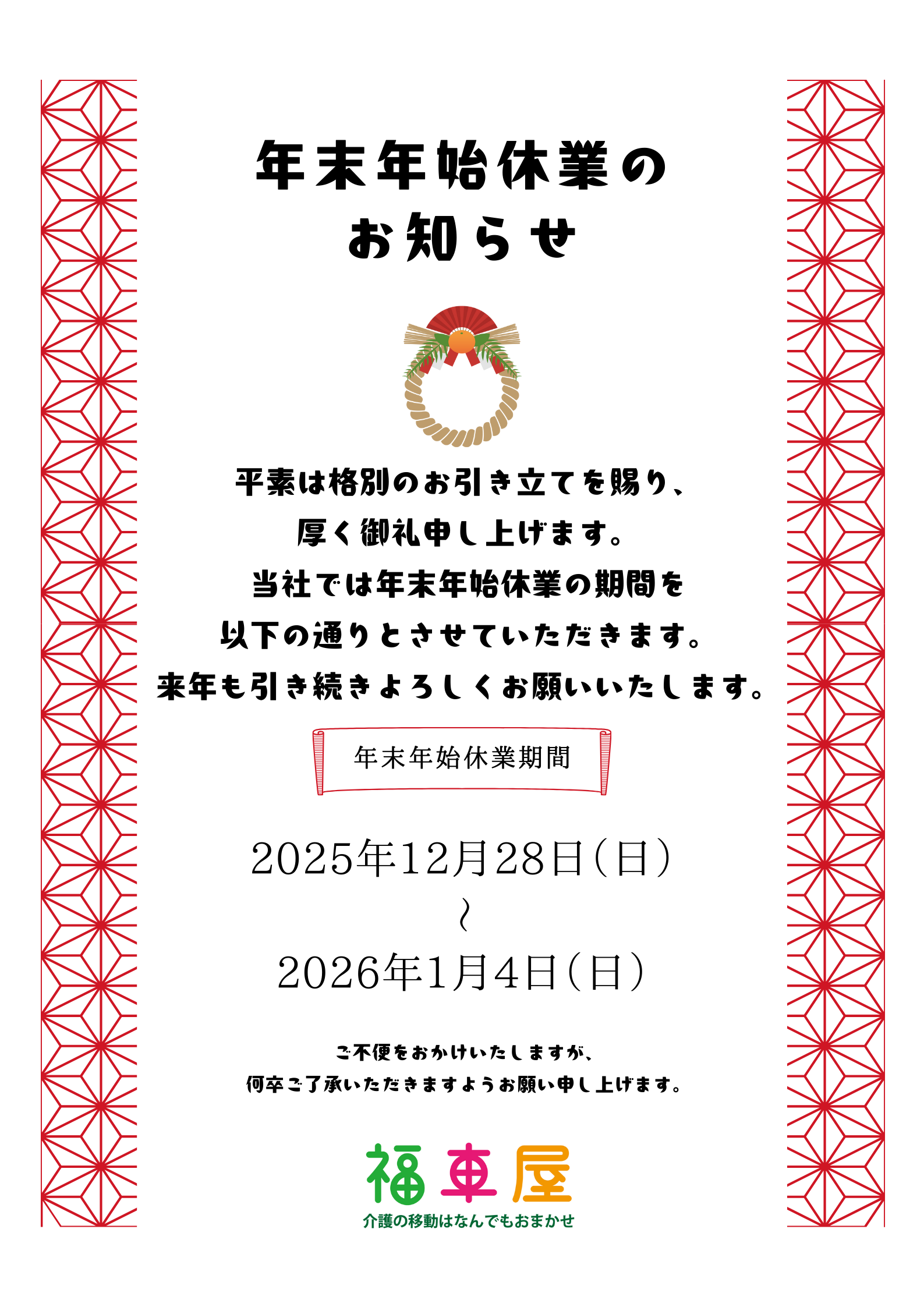 年末年始の休業日のお知らせ
